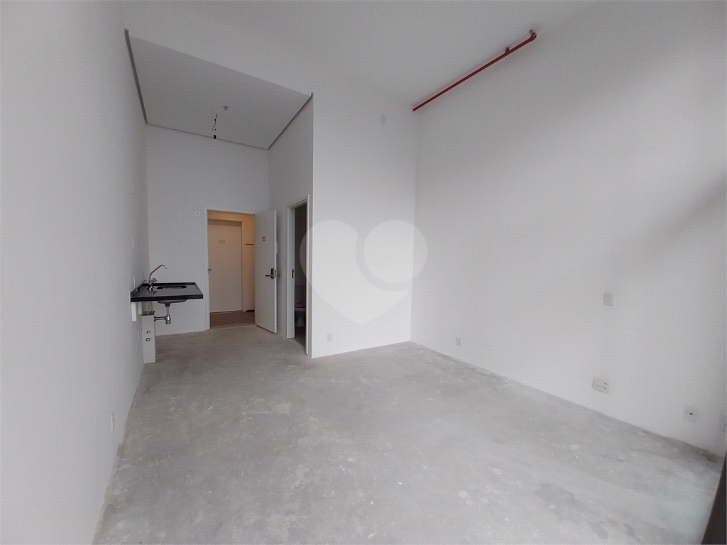 Conforme entregue pela construtora, a unidade tem pé-direito de 3,7 metros e está no contrapiso. Possui 1 quarto/sala com varanda e cozinha integradas em conceito aberto, banheiro social.
