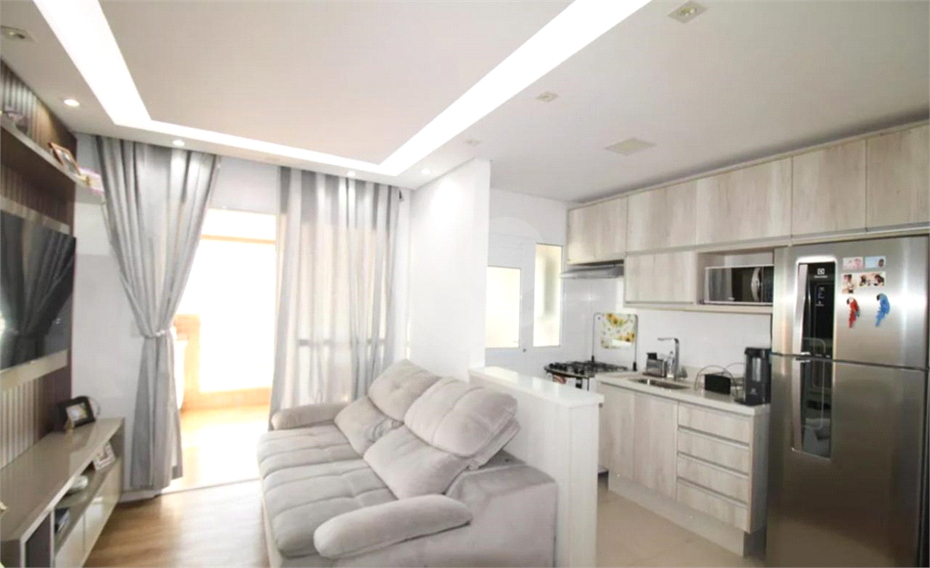 Apartamento de 61 m² com 2 dormitórios (sendo 1 suíte), 2 banheiros, cozinha americana, sala de estar e jantar, área de serviço e varanda com pia e fechamento em vidro. Possui móveis planejados, gás encanado, aquecedor central e água quente nas pias da cozinha e banheiros. Conta com 1 vaga de garagem livre e fixa.