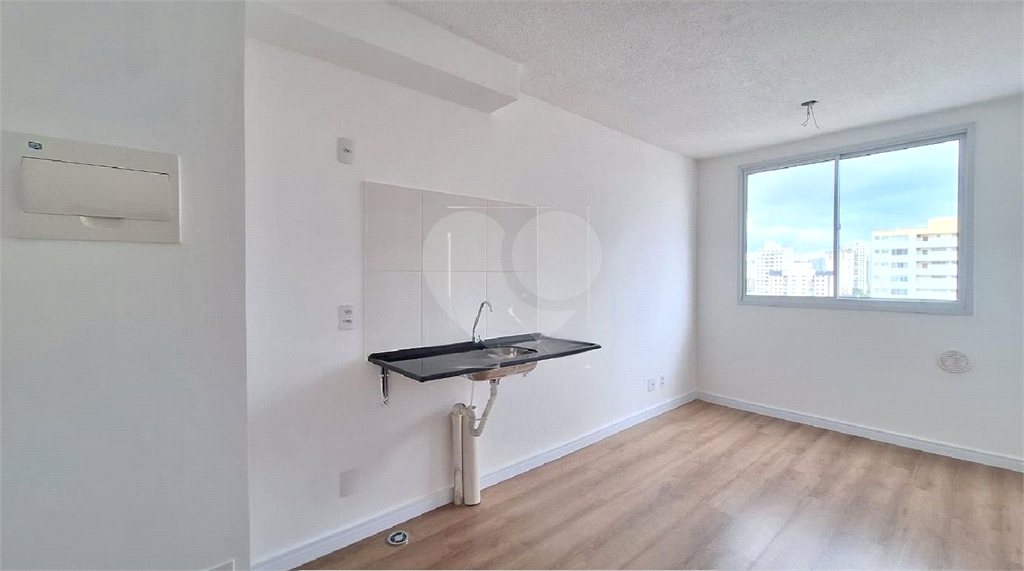 A sala e cozinha unificada proporcionam um ambiente amplo e moderno, separados do quarto para maior conforto. O imóvel nunca foi habitado, apresentando instalações elétricas novas e prontas para uso imediato.