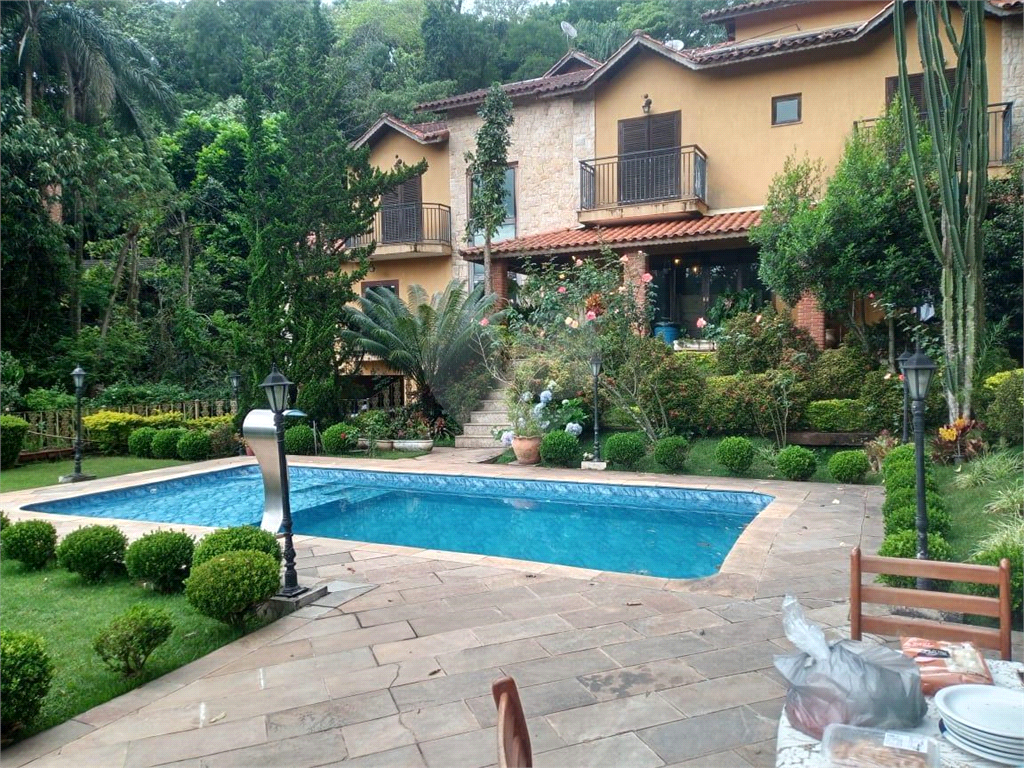 Linda casa na Serra da Cantareira, condomínio Reserva das Hortênsias, terreno de 1.450 metros quadrados, área construída de 550 metros quadrados, a casa é muito espaçosa e confortável, andar de cima são 4 suítes sendo 3 delas com closet, na parte de baixo são 4 salas, uma com lareira, sala de estar, sala de jantar, sala de TV, todas com piso de madeira, lavabo, escritório, janelas amplas que possibilitam entrada de muita luminosidade em todos os ambientes, copa e cozinha, lavanderia, espaço gourmet com churrasqueira e uma deliciosa piscina.Estuda permuta por apartamento até 1.100.000.