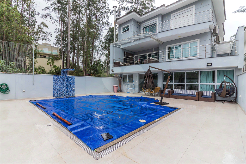 Varanda gourmet com vista panorâmica para a piscina e área verde