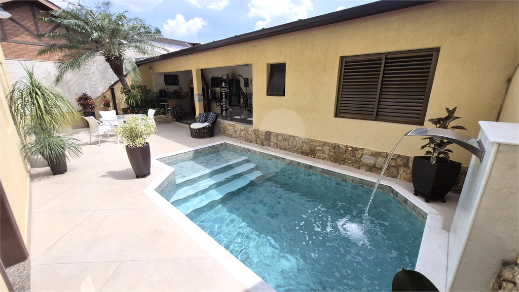 Piscina com cascata e aquecimento solar;