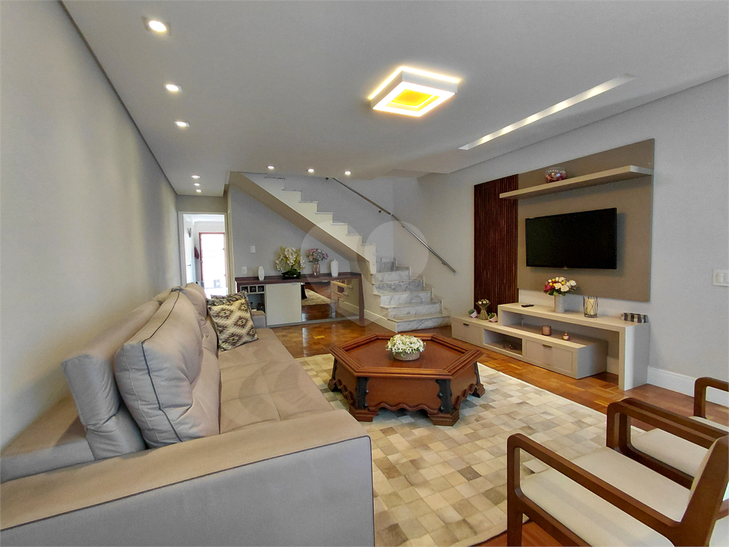 A planta oferece sala para dois ambientes, escada em mármore com acesso ao pavimento superior e cozinha ampla, com possibilidade de integração para copa. Conta ainda com dependência de serviço, quintal com entrada lateral e duas vagas de garagem. Ambientes bem distribuídos, iluminados e com excelente aproveitamento dos espaços.